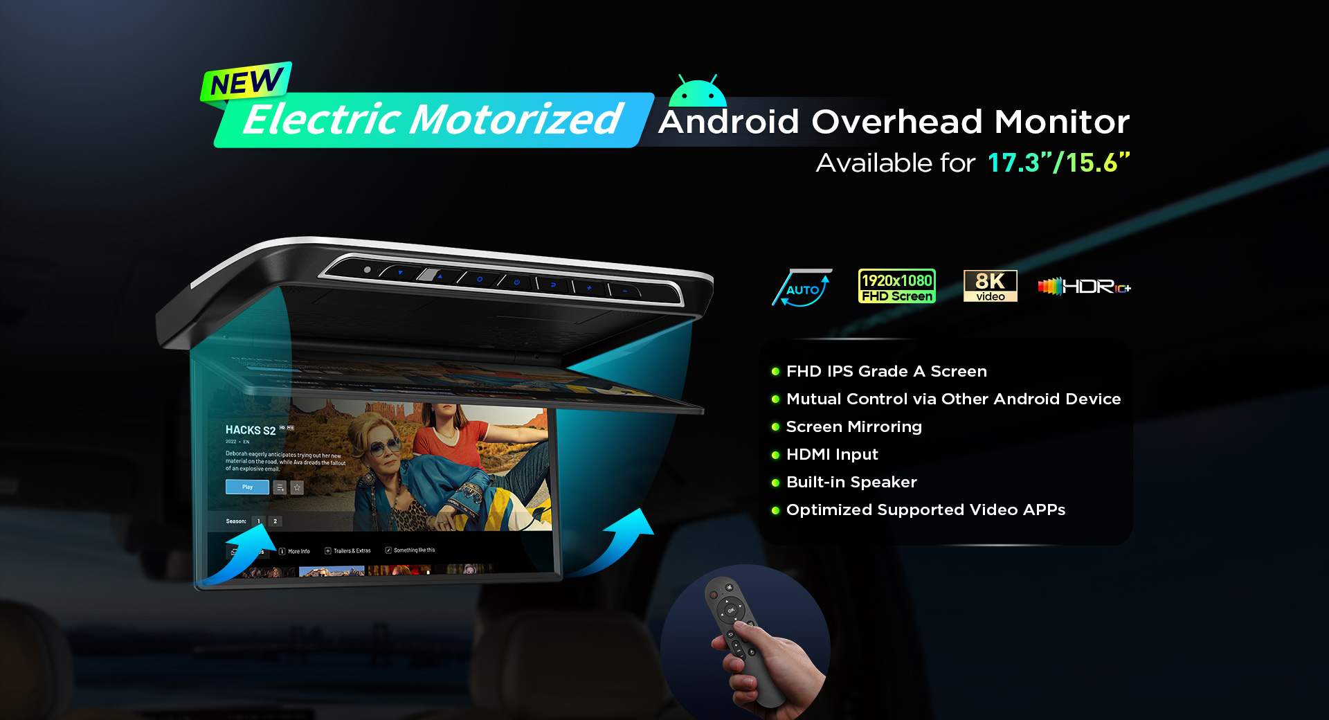 19.5 inch Ultra-thin 8 core Android Car TV Roof Multimedia Player with HD Input