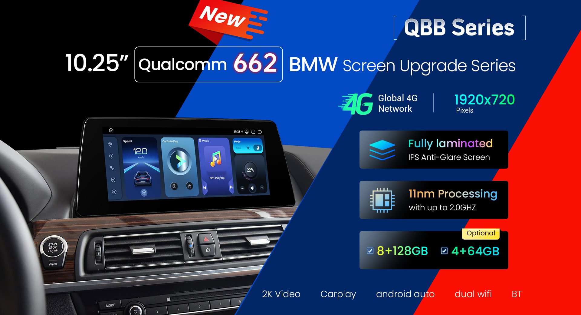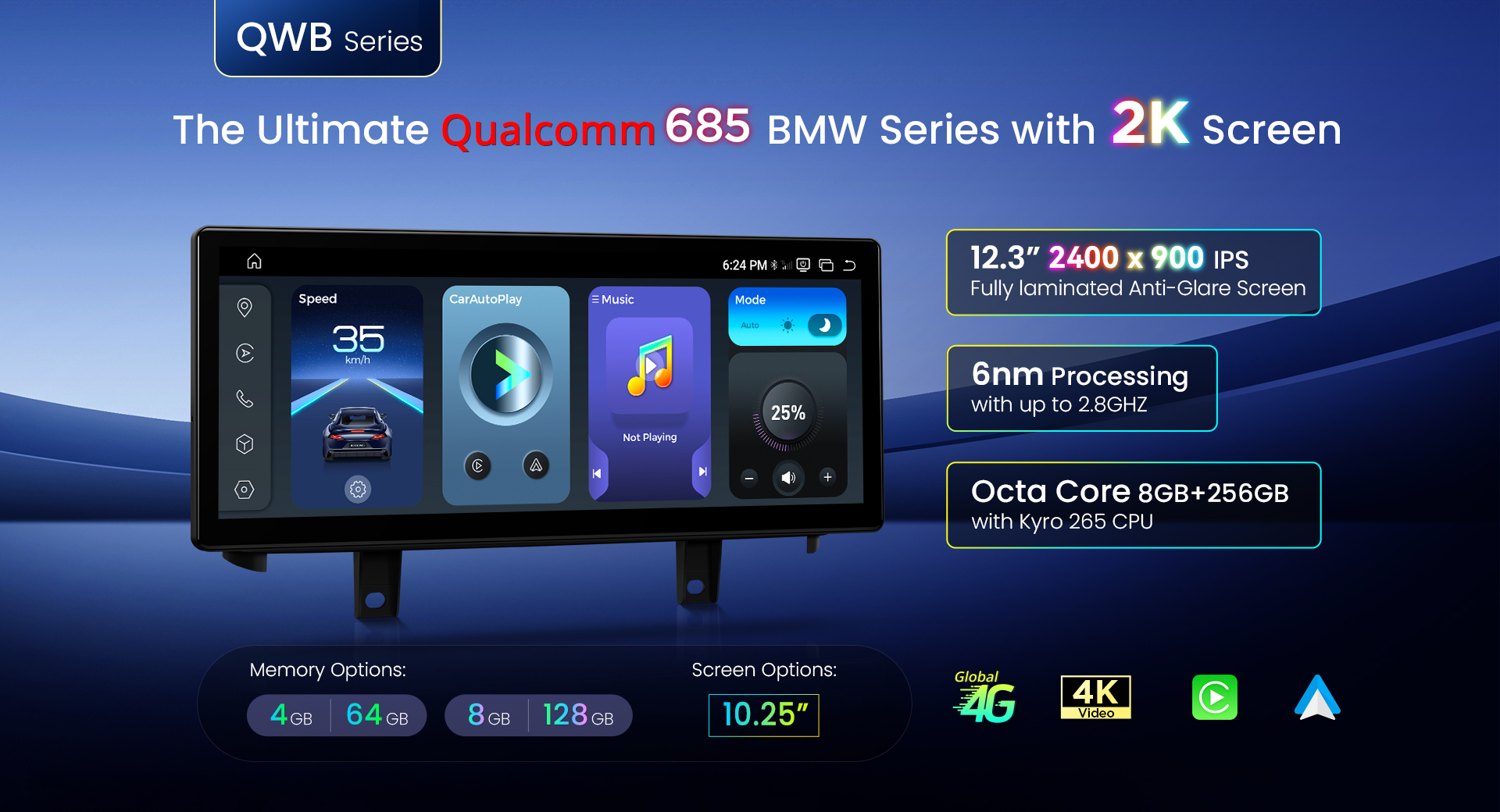 7 inch Qualcomm Snapdragon 665 AI Solution Android Octa Core 8GB RAM + 256GB ROM Car Navigation System (4G LTE*) Universal Double Din Size