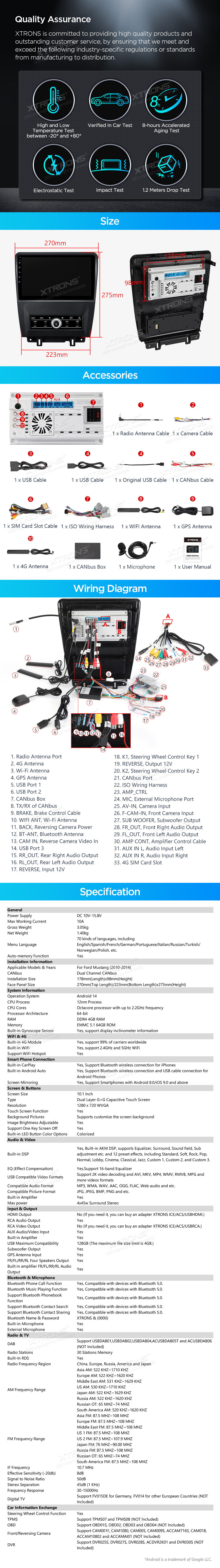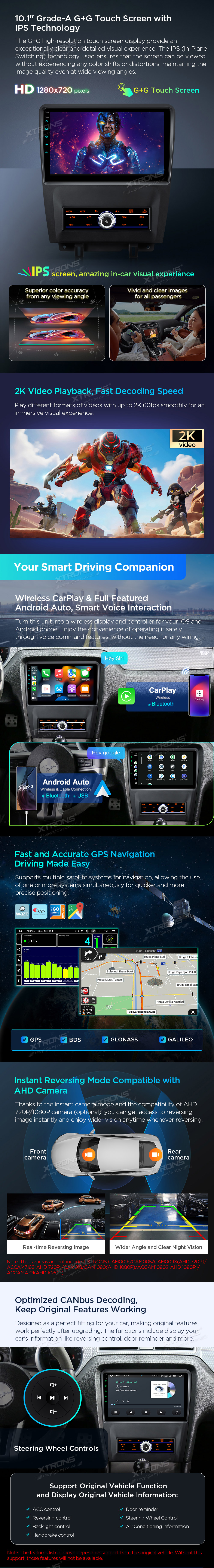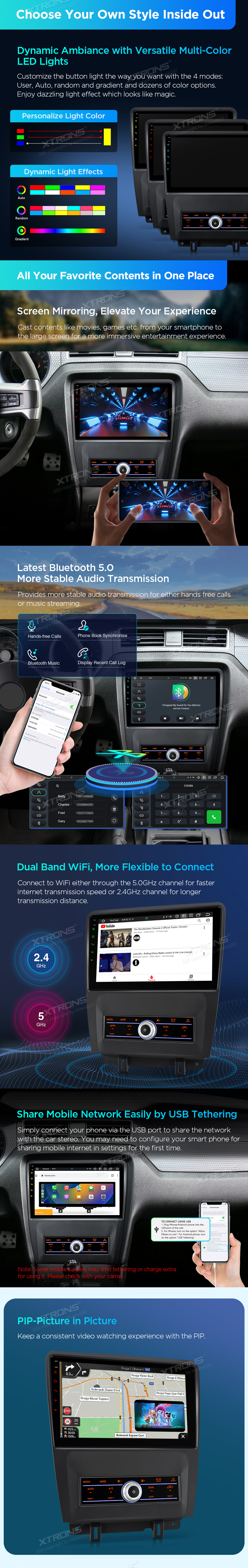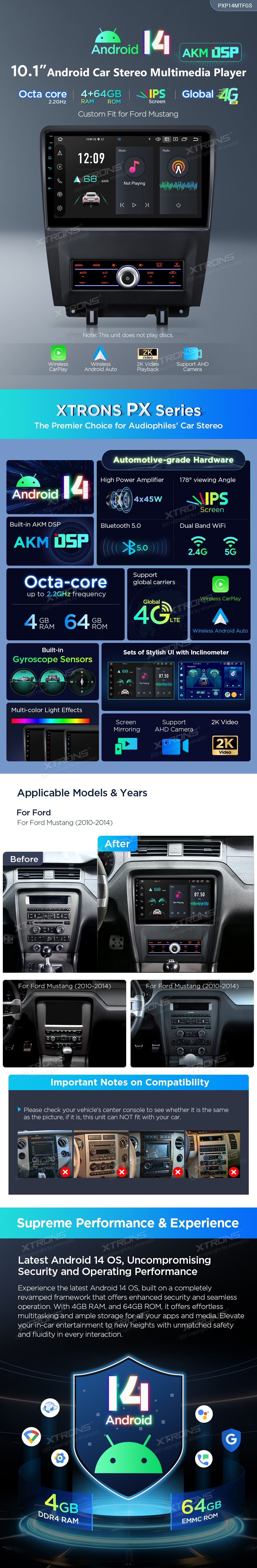 10.1 inch 4+64GB Octa Core Android 14 Car Stereo Multimedia Player Built-in AKM DSP 4G Gyroscope Sensors for Ford Mustang 2010-2014