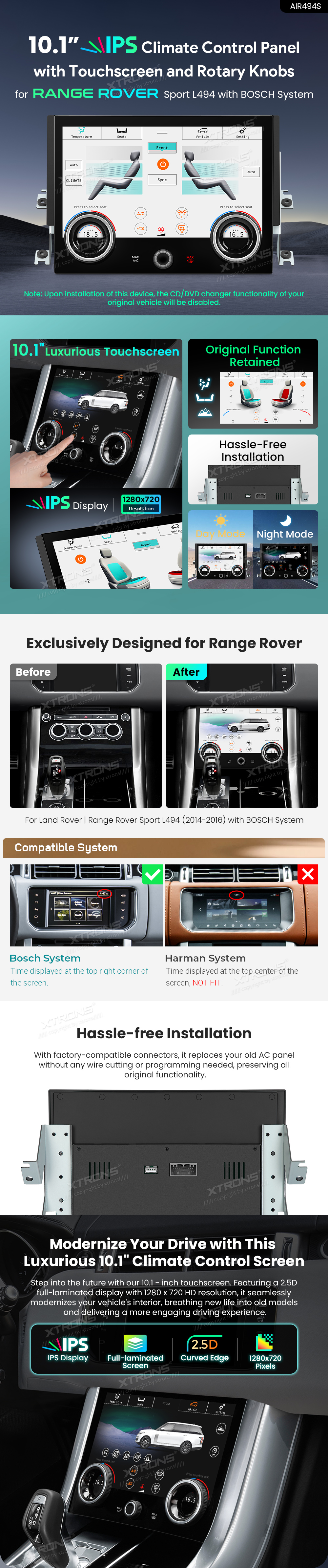 10.1 Inch IPS Climate Control Panel with Touchscreen and Rotary Knobs for RANGE ROVER Sport L494 (2014-2016)