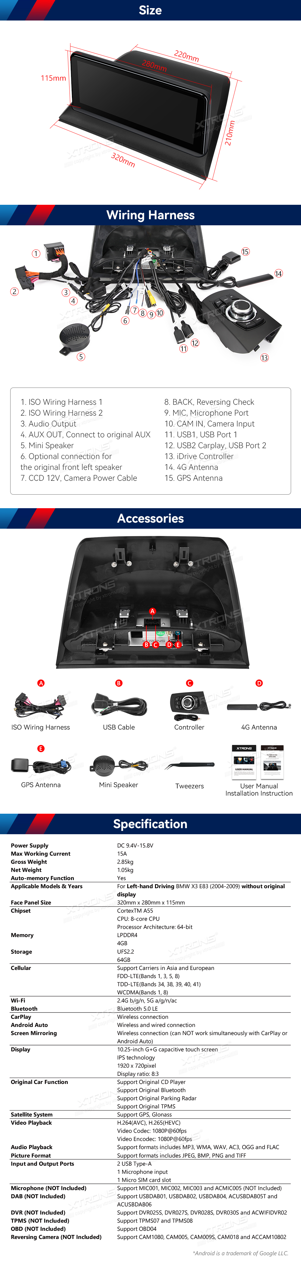 10.25 Inch 4+64GB Android Car GPS Multimedia Player Built-in 4G IPS Touch Screen For BMW X3 E83 LHD