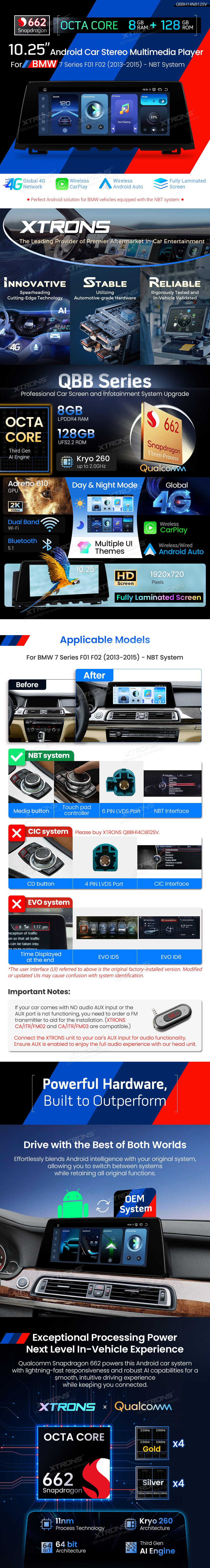 10.25 inch 8+128GB Qualcomm Snapdragon 662 Fully Laminated Screen Global 4G Android Car Stereo for BMW 7 Series F01/F01 (2013-2015) With NBT System