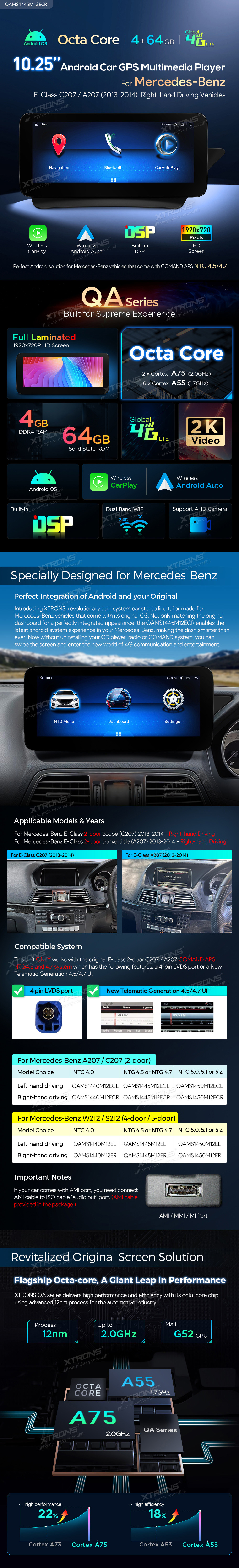 10.25 Inch Android Octa Core 4GB+64GB Car GPS Multimedia Player for Mercedes-Benz E-Class C207 / A207 (2013-2014) Right Driving Vehicles