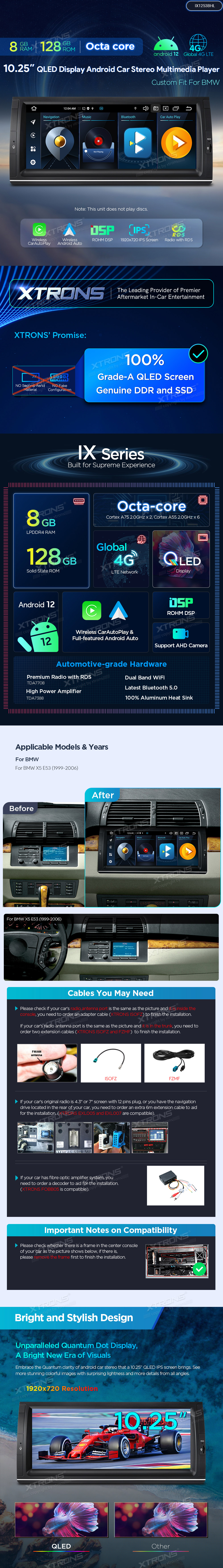 10.25 inch QLED Display Android Car Stereo Multimedia Player Octa core Processor 8GB RAM & 128GB ROM Custom Fit for BMW
