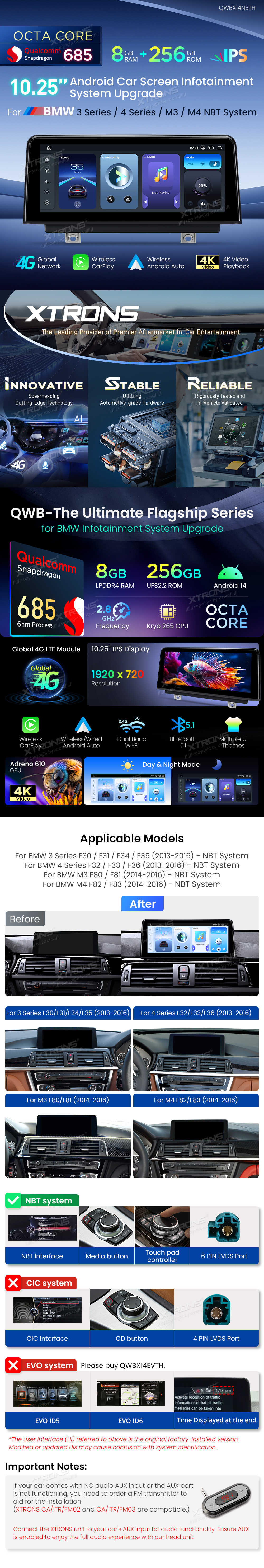 10.25 Inch Qualcomm Snapdragon 685 8+256GB IPS Screen Android Car Screen Infotainment System Upgrade for BMW 3/4 Series/M3/M4 NBT System