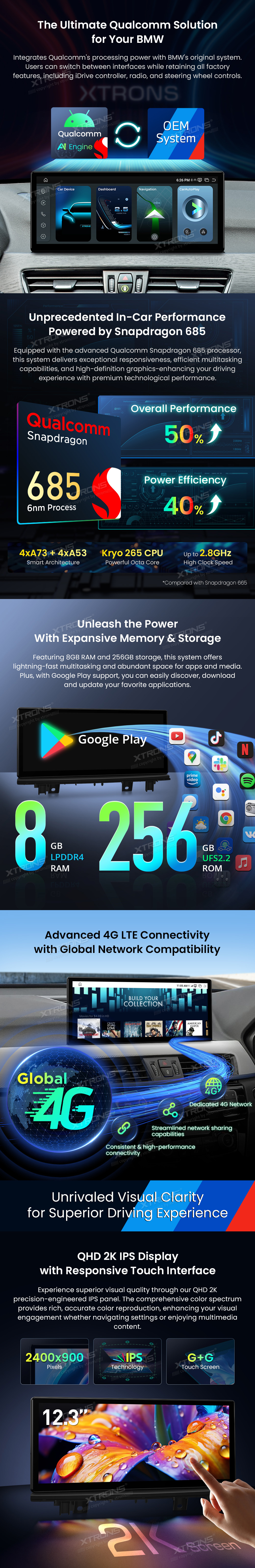 12.3 Inch 2K Screen Qualcomm Snapdragon 685 8+256GB Android Car Screen Infotainment System Upgrade for BMW X1 F48 NBT System