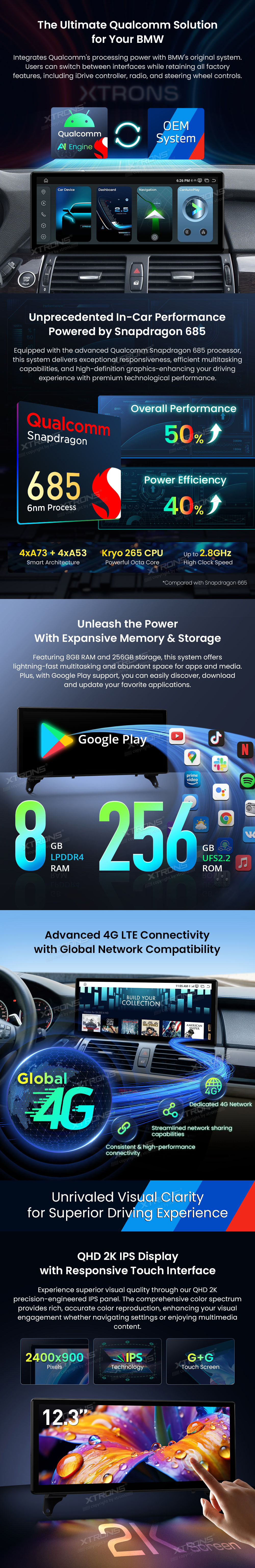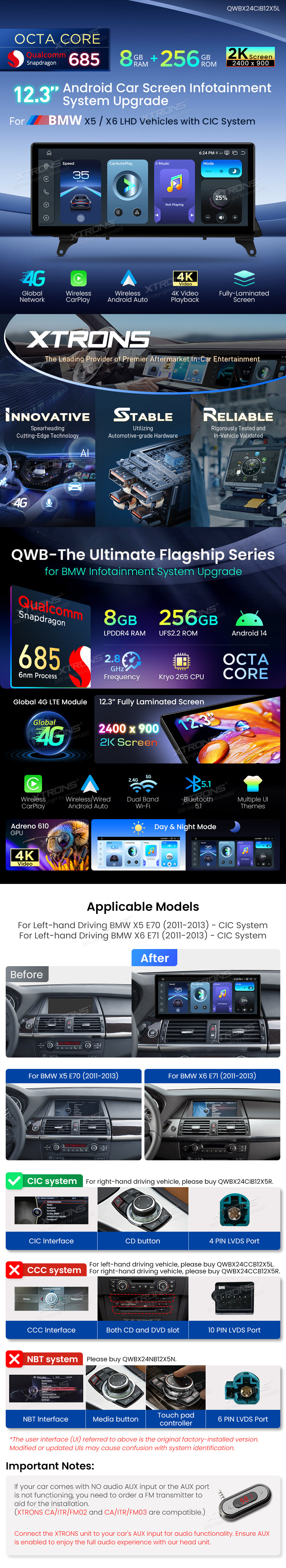 12.3 Inch 2K Screen Qualcomm Snapdragon 685 8+256GB Android Car Screen Upgrade for BMW X5 E70/X6 E71 (2011-2013) LHD CIC System