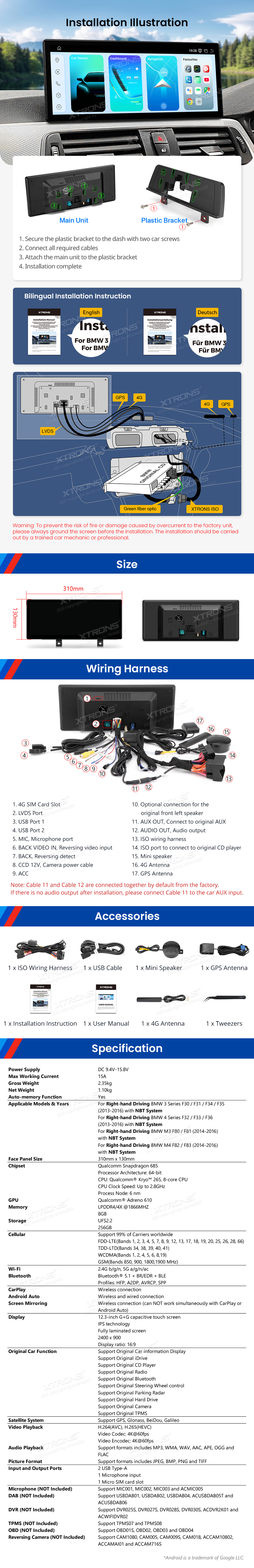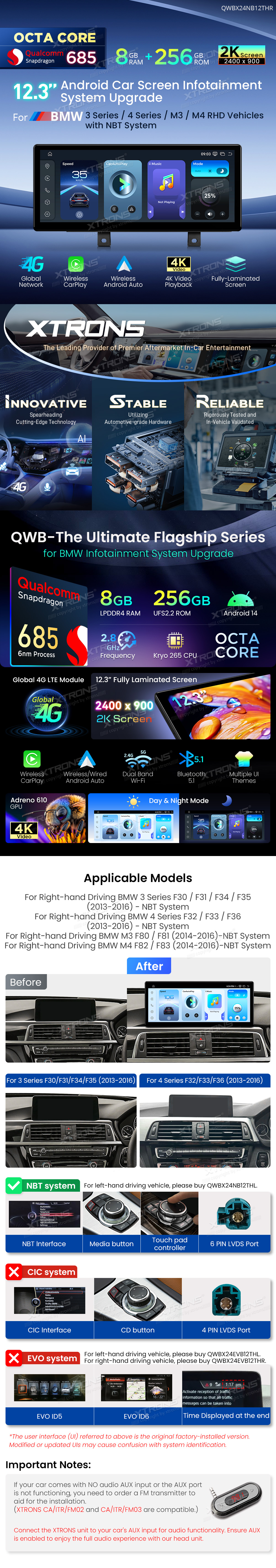 12.3 Inch 2K Screen Qualcomm Snapdragon 685 8+256GB Android Car Screen Upgrade for RHD BMW 3/4 Series/M3/M4 NBT System