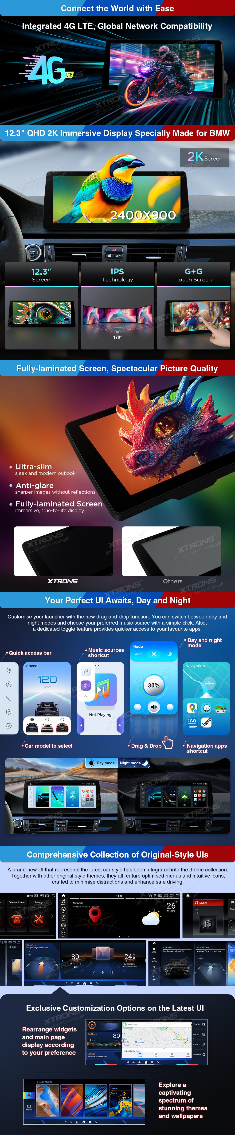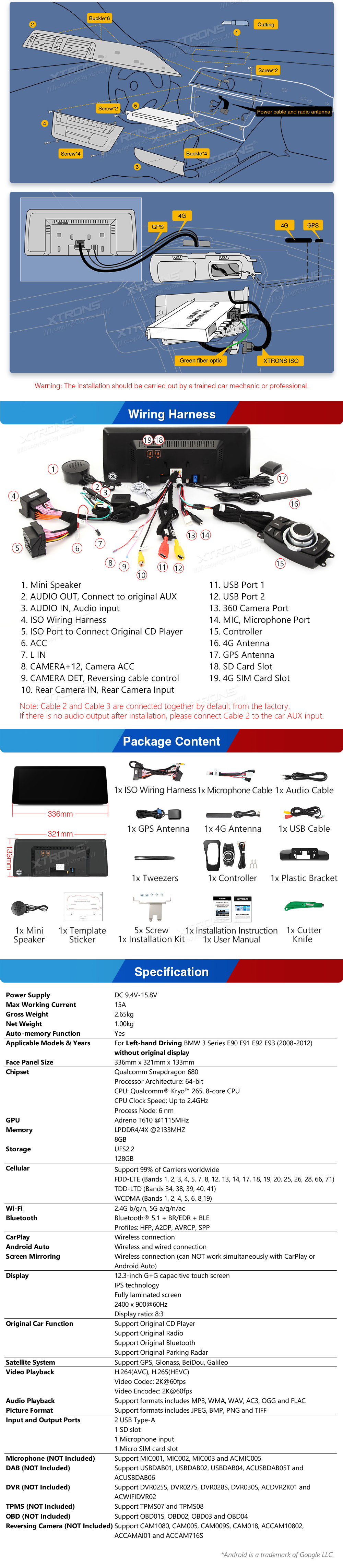 12.3 inch 8+128GB Snapdragon 680 2K Screen Global 4G Android Car Stereo Player for BMW 3 Series E90/E91/E92/E93 Left Driving Vehicles with No Original Display