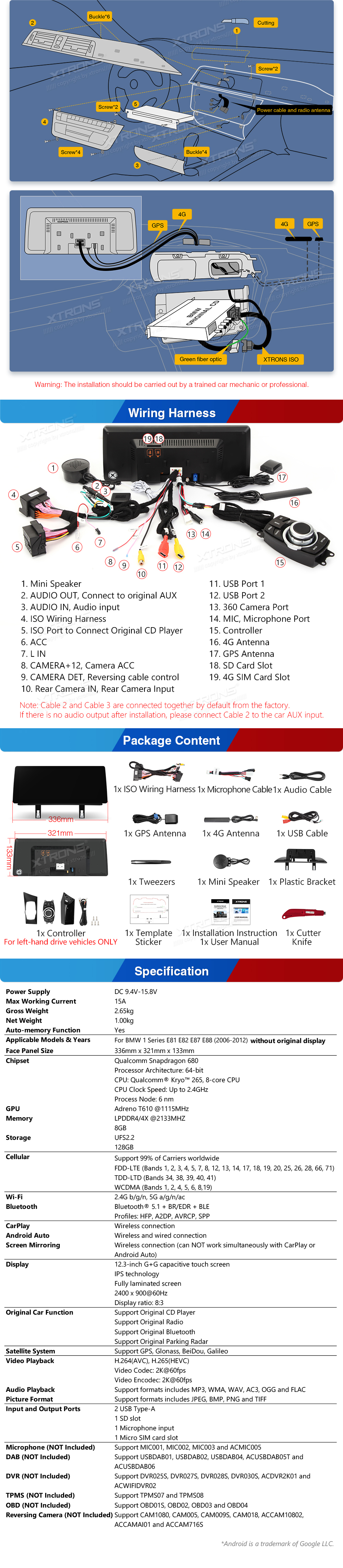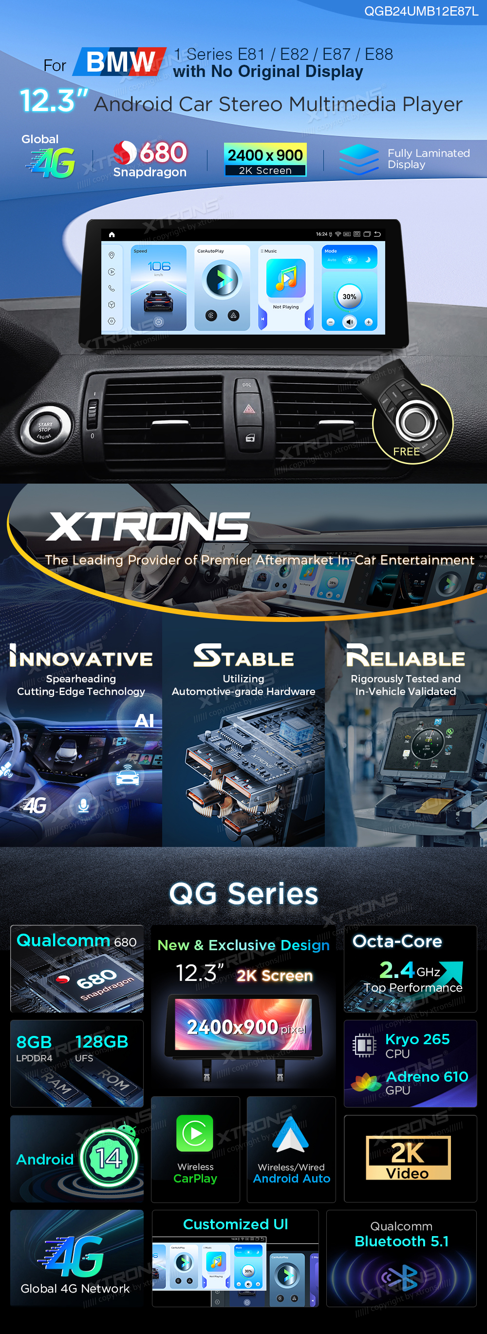 12.3 inch 8+128GB Snapdragon 680 2K Screen Global 4G Android Car Stereo Player for LHD BMW 1 Series E81/E82/E87/E88 2006-2012 with No Original Display
