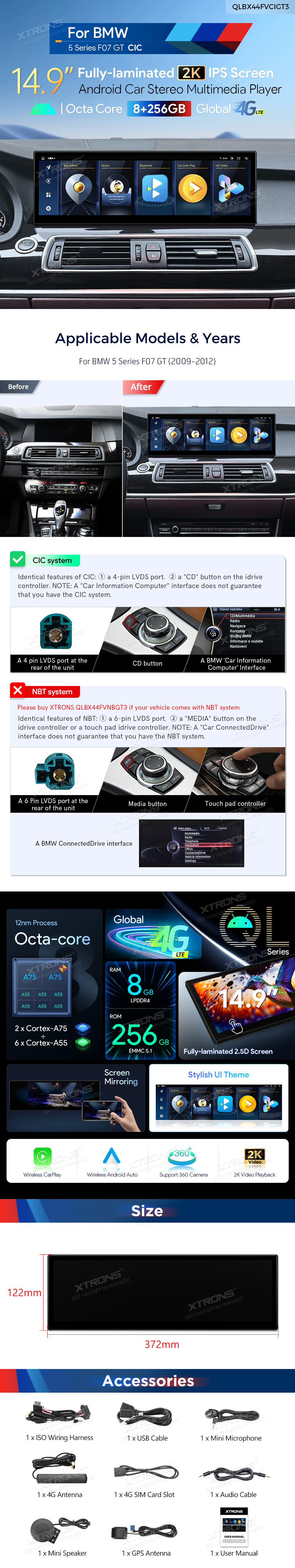 *Applicable for BMW 5 Series F07 GT (2009-2012) CIC system