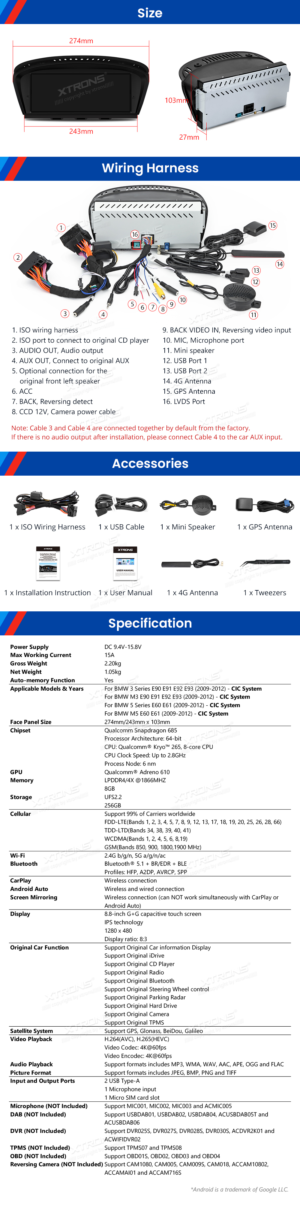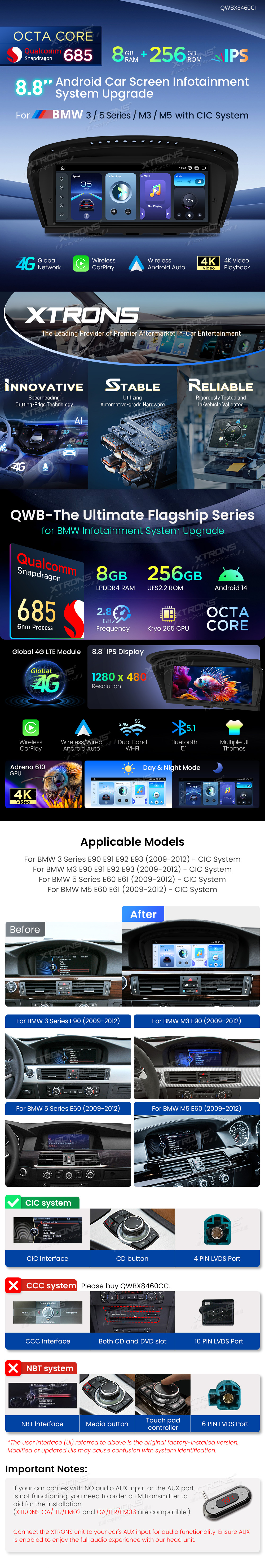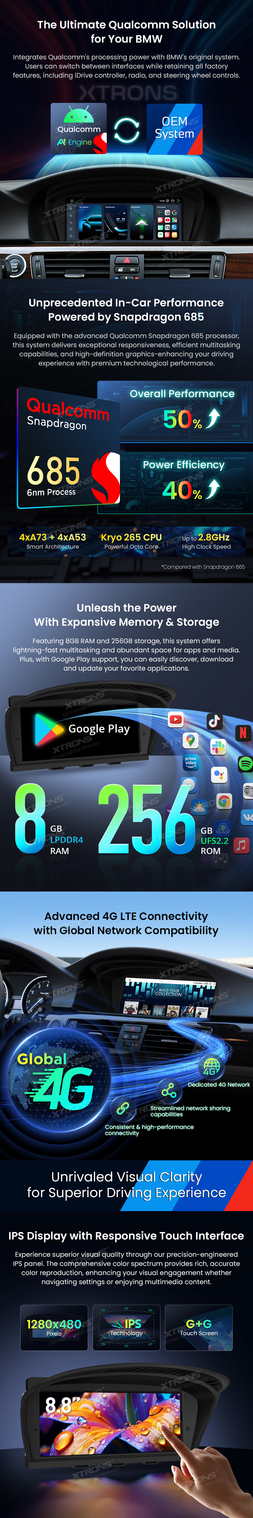 8.8 Inch Qualcomm Snapdragon 685 8+256GB IPS Screen Android Car Screen Infotainment System Upgrade for BMW 3/5 Series/M3/M5 With CIC System
