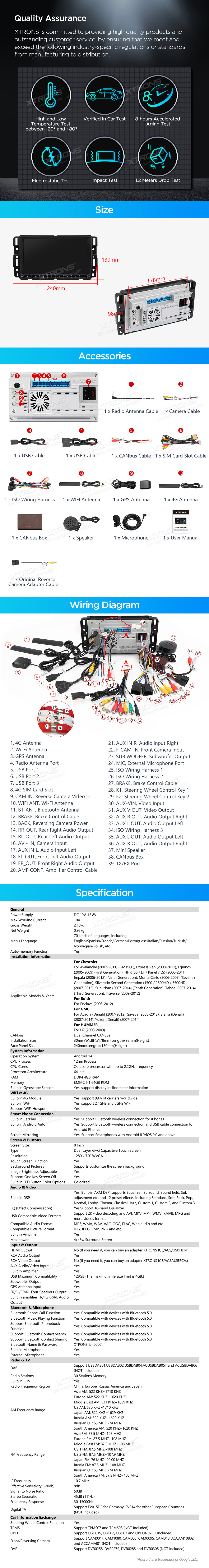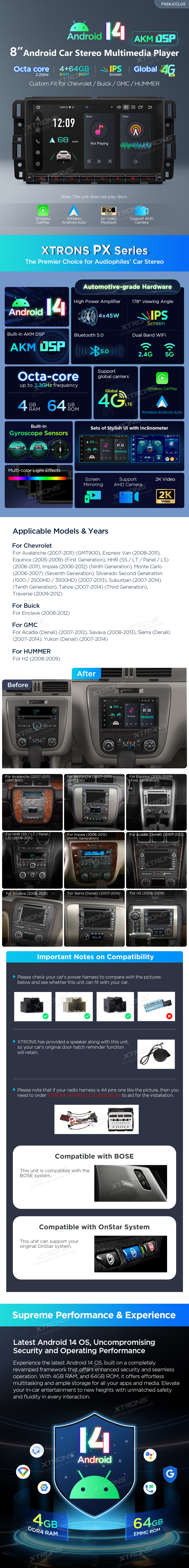 8 inch 4+64GB Octa Core Android 14 Car Stereo AKM DSP Global 4G Gyroscopes for Chevrolet/Buick/GMC/HUMMER