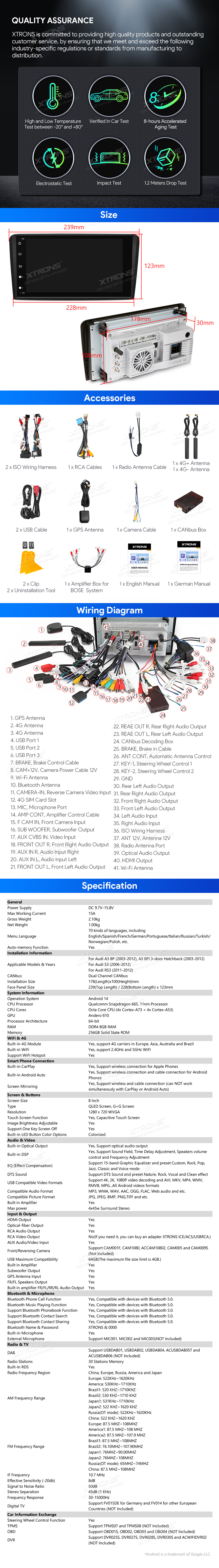 8 inch Octa core Car Android Navigation System 8+256GB QLED IPS Display built-in DTS Digital Sound DSP Chipset Fit for Audi
