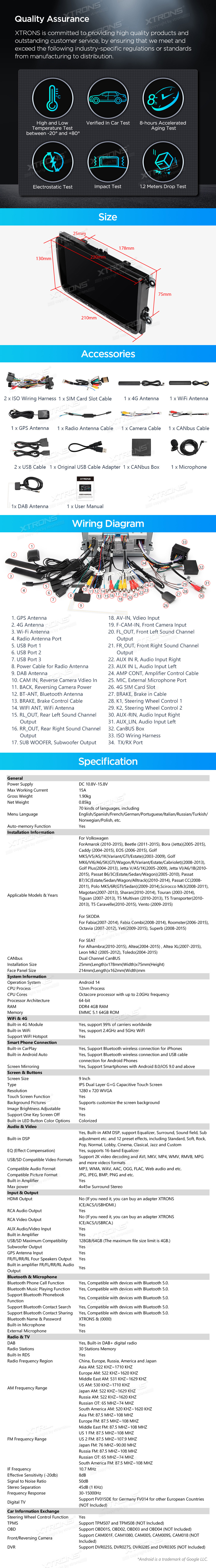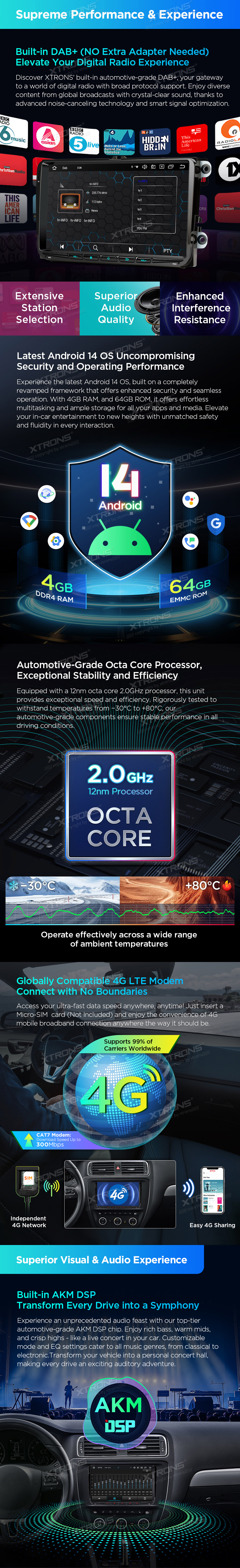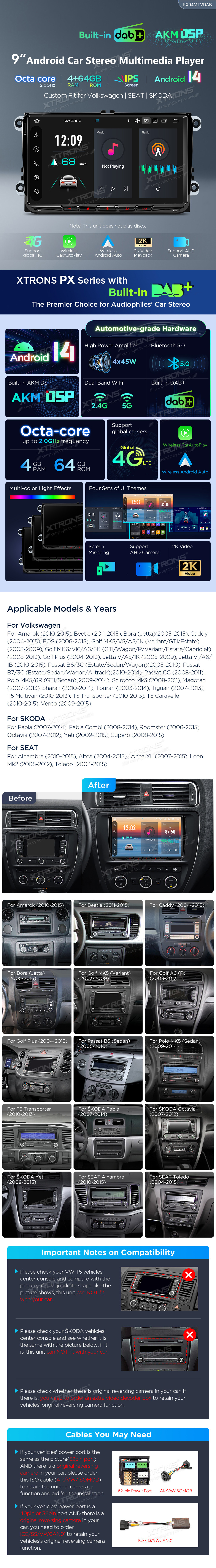 9 Inch Android 14 Car Stereo Multimedia Player Built-in DAB+ Custom Fit for Volkswagen / SEAT / SKODA