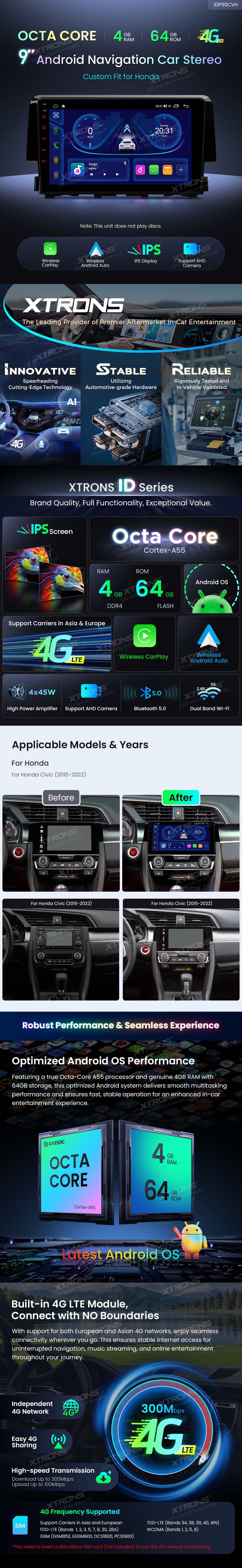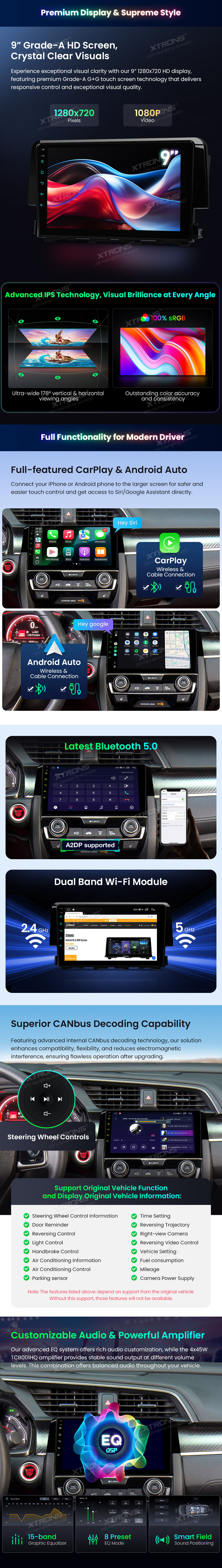 9 Inch Octa Core 4+64GB IPS Display EQ DSP Multiple UI Android Navigation Car Stereo for Honda Civic 2015-2022