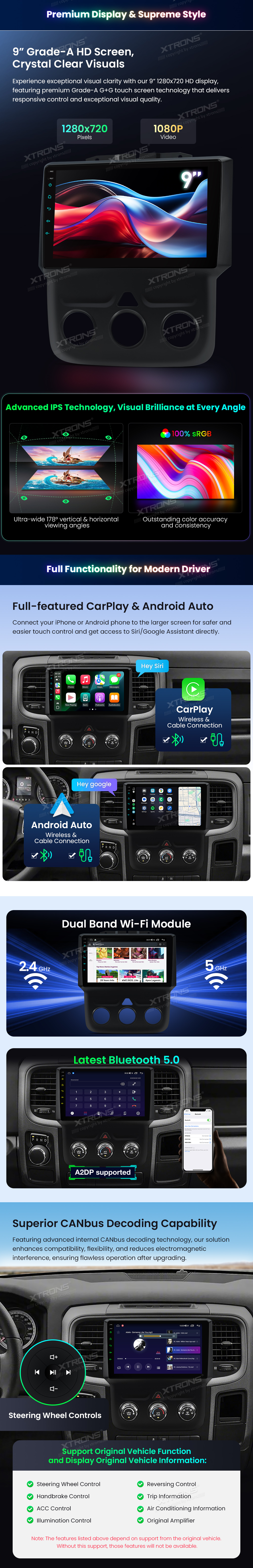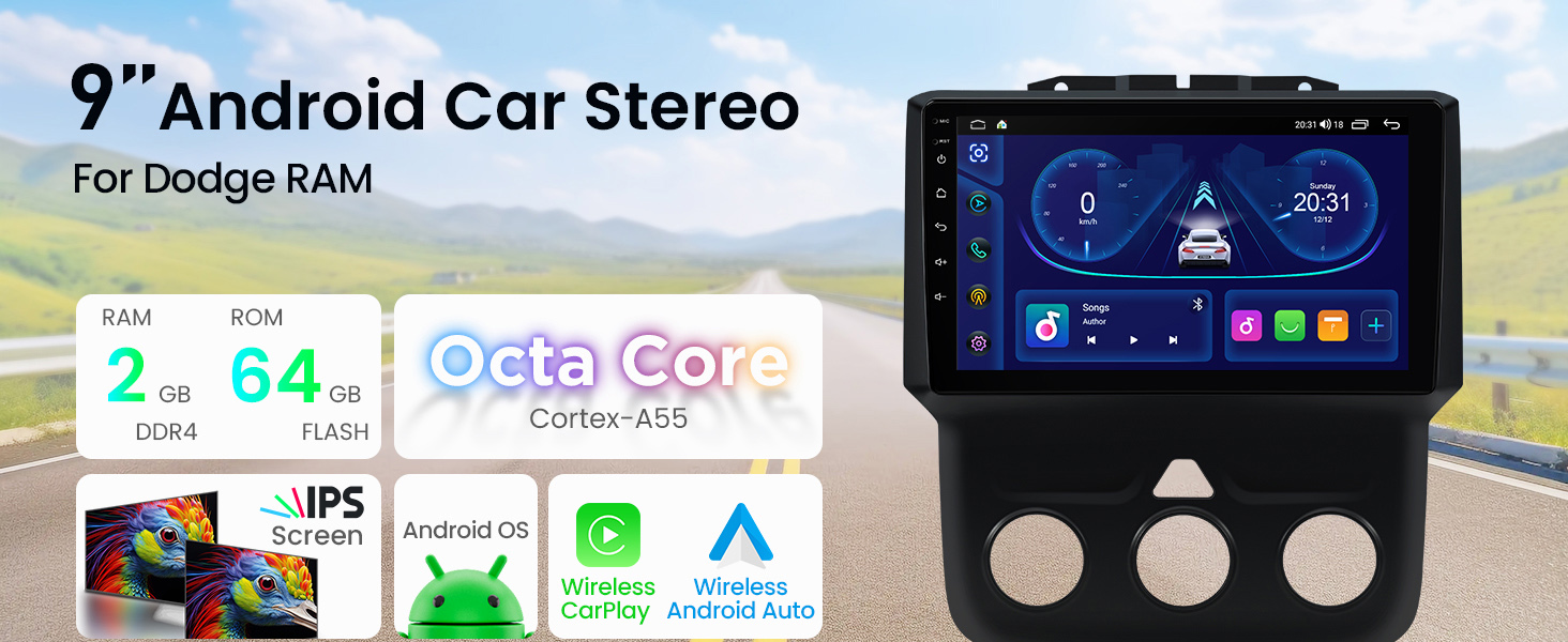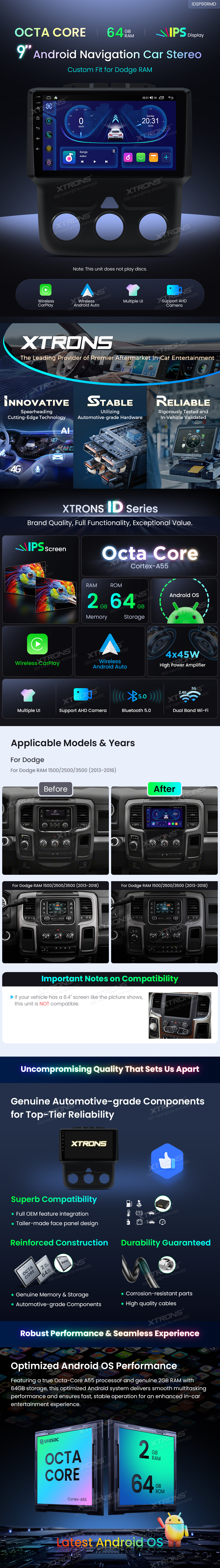 9 Inch Octa Core 64GB IPS Display EQ DSP Multiple UI Android Navigation Car Stereo for Dodge RAM 1500/2500/3500 2013-2018
