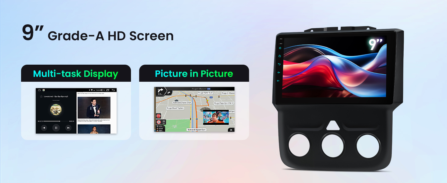 *9 inch Grade-A HD Screen, Crystal Clear Visuals