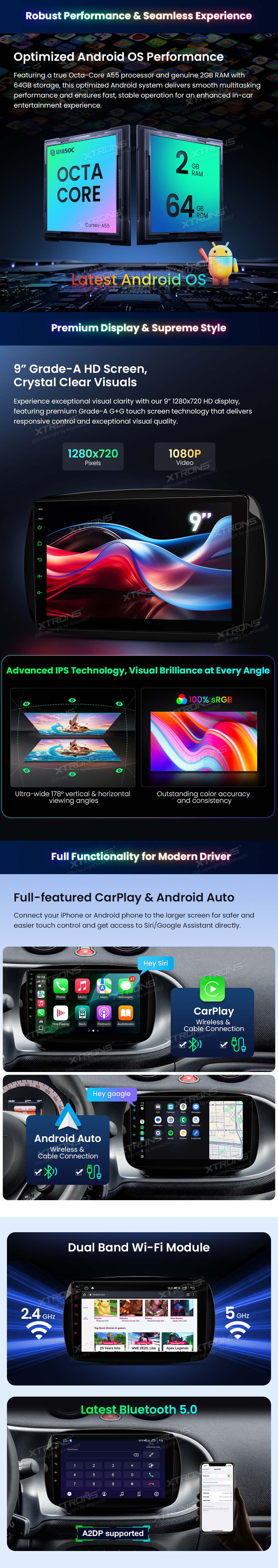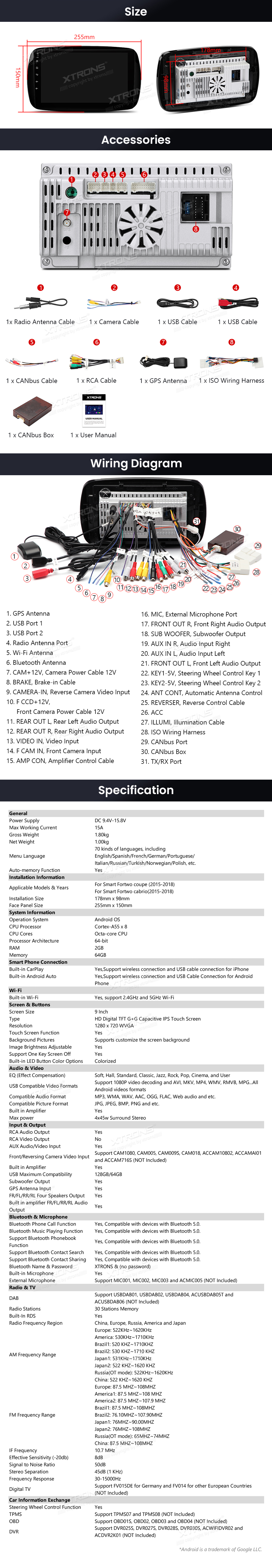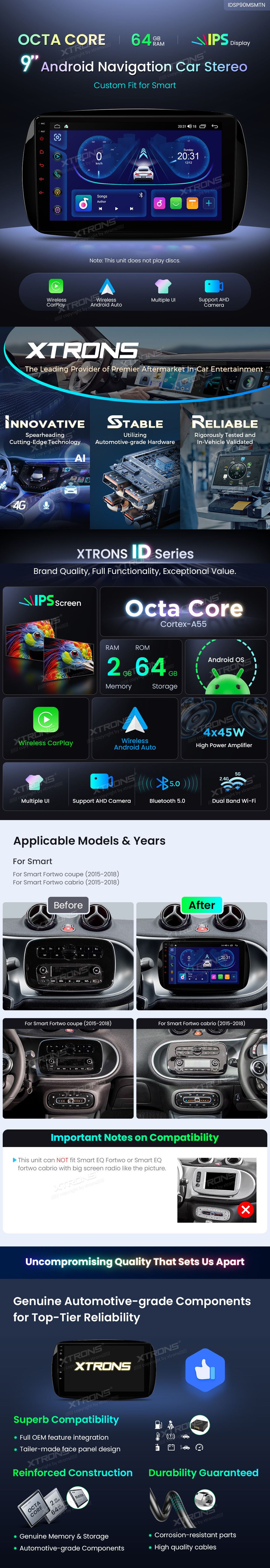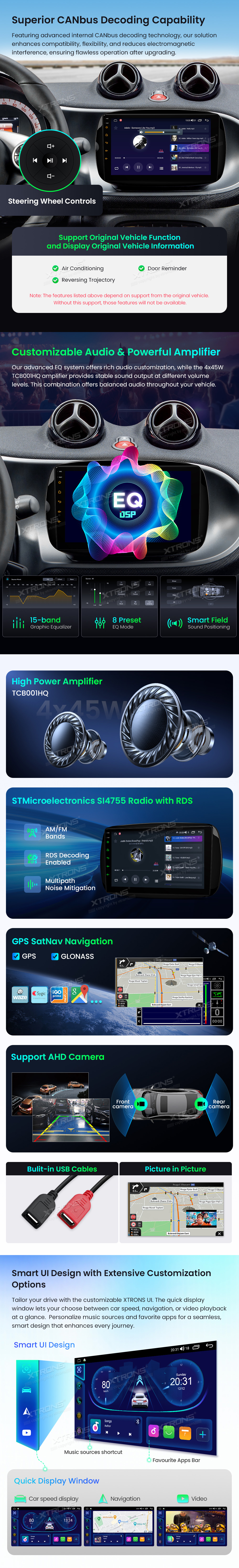 9 Inch Octa Core 64GB IPS Display EQ DSP Multiple UI Android Navigation Car Stereo for Smart Fortwo Coupe/ Cabrio 2015-2018
