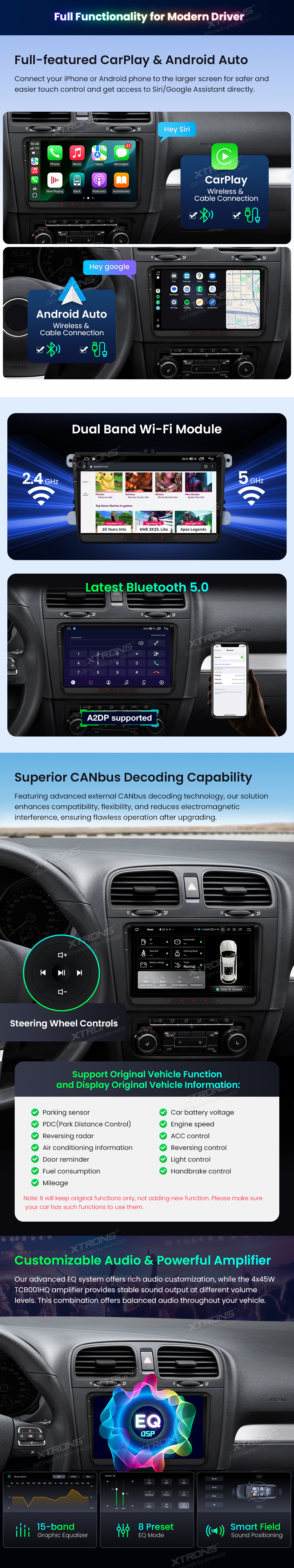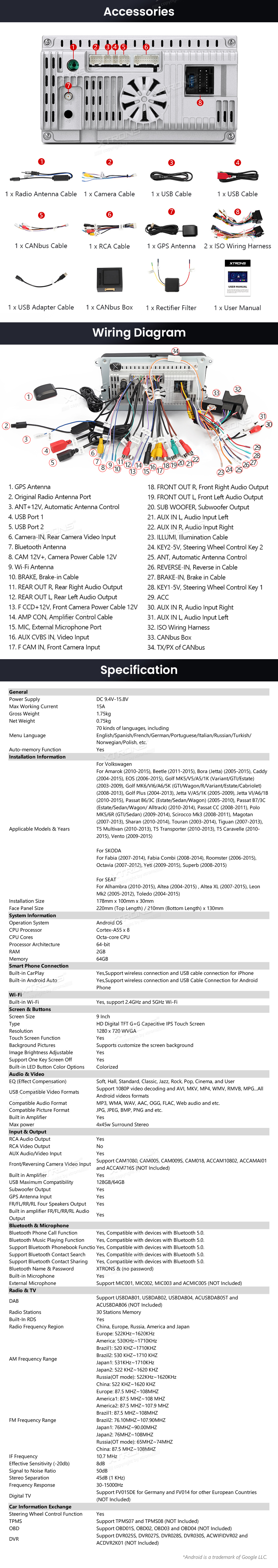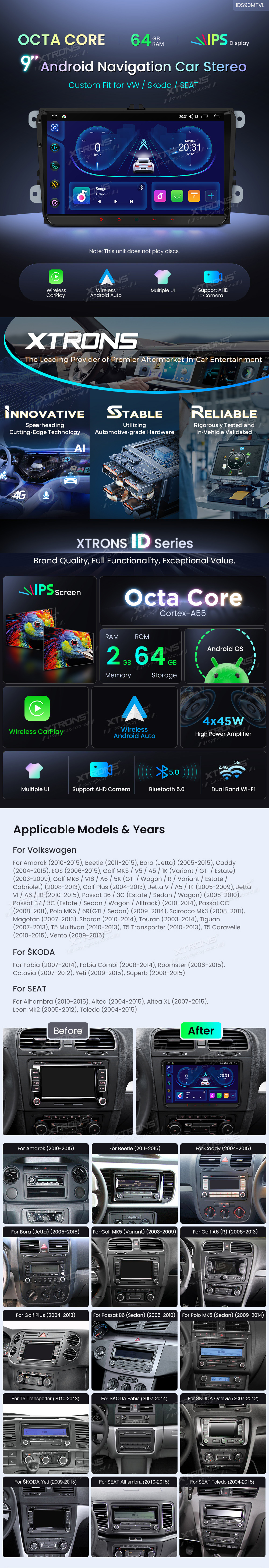 9 Inch Octa Core 64GB IPS Display EQ DSP Multiple UI Android Navigation Car Stereo for VW/Skoda/SEAT
