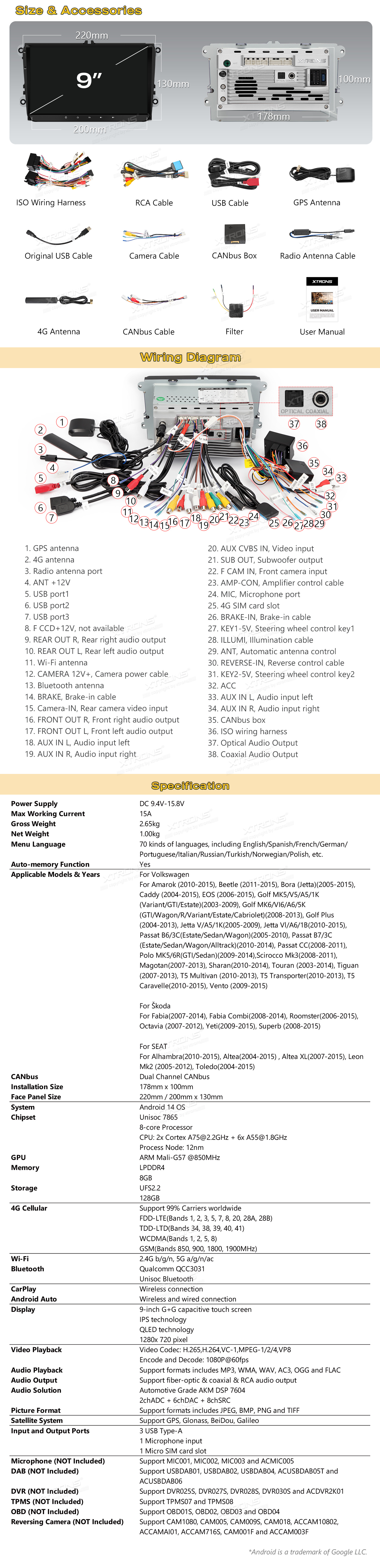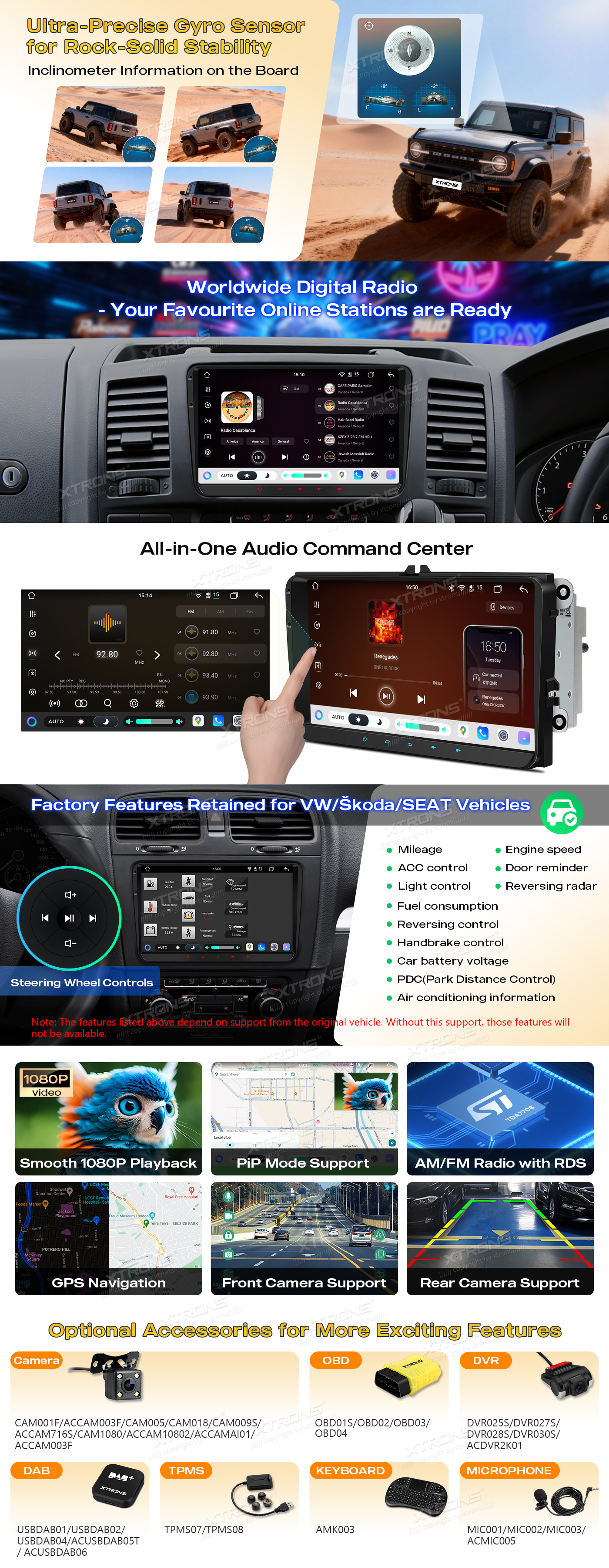 *Extend More Features with Optional Accessories: Camera, DAB, DVR, OBD, TPMS, Keyboard, Microphone