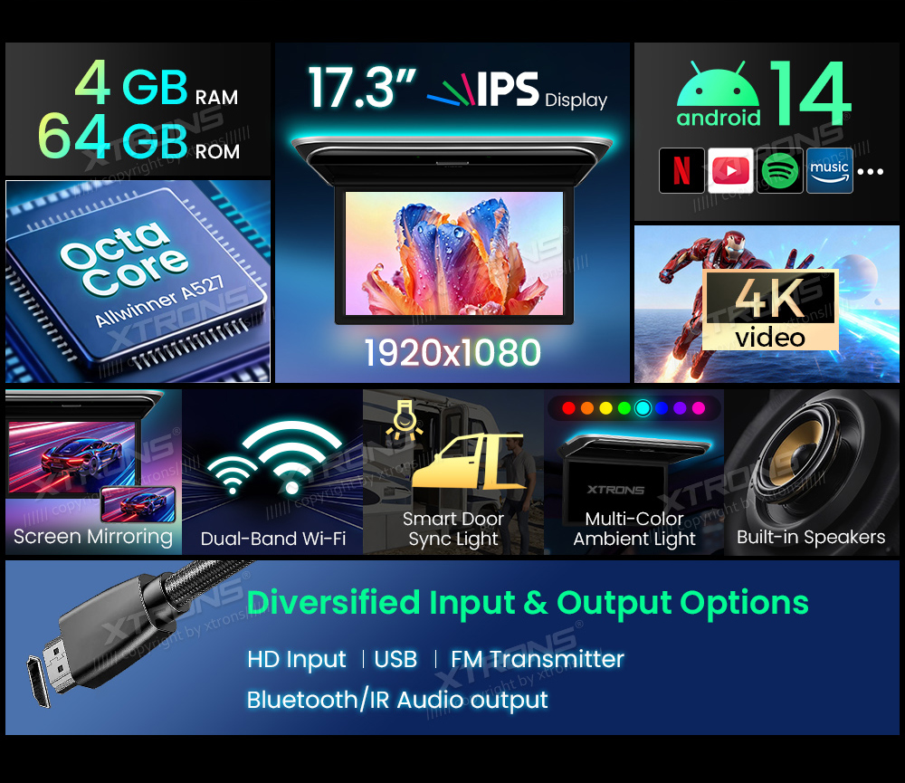 XTRONS, a leading manufacturer of automotive display solutions, today announced the global launch of its new CM series of Android-enabled ceiling-mounted displays, offering two distinct options: the affordable AF series and the high-performance AH series. Designed specifically for the car audio and vehicle upgrade display markets, this dual-line launch strategy provides dealers with flexible options ranging from budget van ceiling displays to high-end luxury van ceiling screens. This launch marks a significant step forward for XTRONS in providing stable, high-quality rear-seat entertainment systems to B2B dealers and aftermarket shops worldwide.